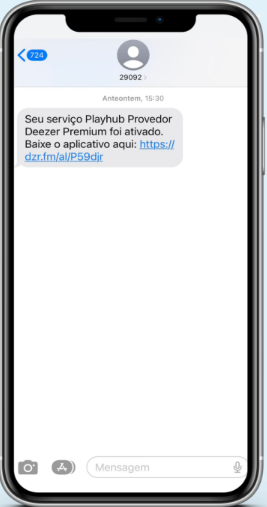 Você vai receber um link por SMS para ativação do Deezer Premium. Clique no link.