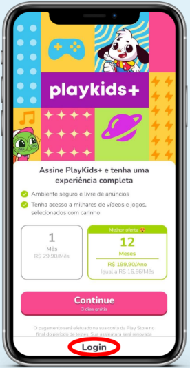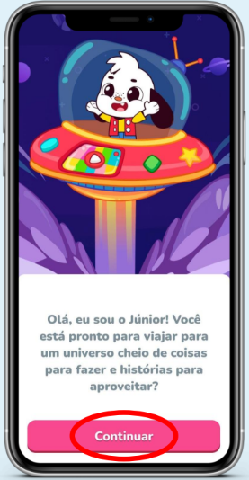 Abra o app PlayKids e clique em “Continuar”.