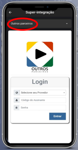Clique em “Selecione o Provedor” e, em seguida, clique na opção “OUTROS PARCEIROS”.